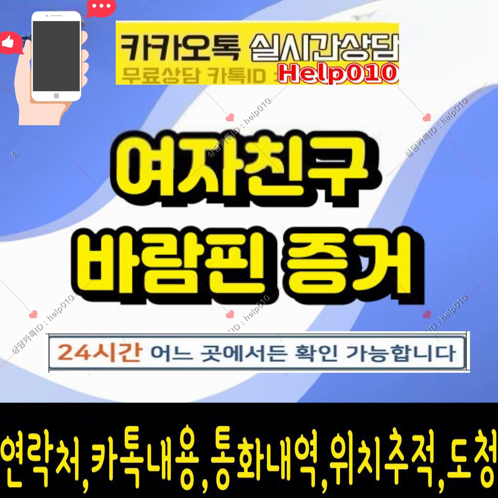 [대한민국NO.1모바일흥신소]?카톡ID:Help010?배우자외도증거수집 핸드폰복제,위치추적 문자내역조회*카톡내용복구*통화내역확인*복제폰 쌍둥이폰전문흥신소
